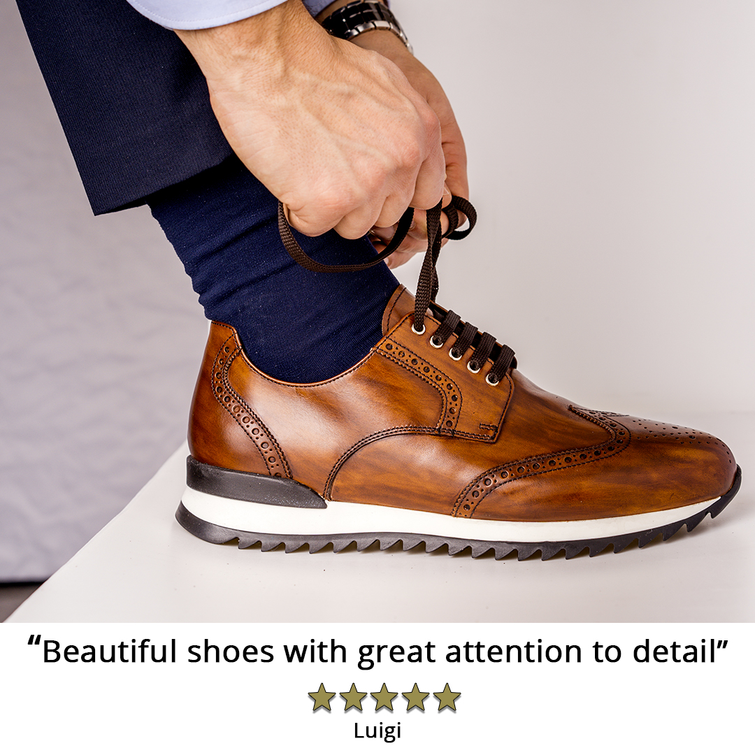 Ogni nostra scarpa รจ prodotta artigianalmente in Italia in soli 10 giorni lavorativi e consegnata tramite il nostro partner DHL.